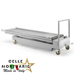 Il carrello elevatore idraulico viene utilizzato sia per il trasporto delle salme su barelle, sia in abbinamento alle celle refrigerate per l’inserimento ed estrazione delle barelle da parte di un solo operatore.